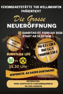 Das Vereinsheim des TuS Wellinghofen hat wie folgt geöffnet: